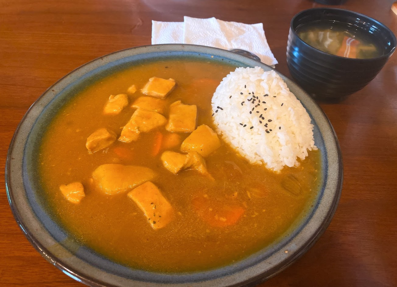 雖然只有簡單的咖哩飯,但是味道適中,讓人感到暖暖的。調味不會過重,咖哩屬於比較偏日式的甜味咖哩,搭配胡蘿蔔跟馬鈴薯,煮得恰到好處。可以加價搭配溏心蛋以及花椰菜還有飲料,份量足夠且不貴。