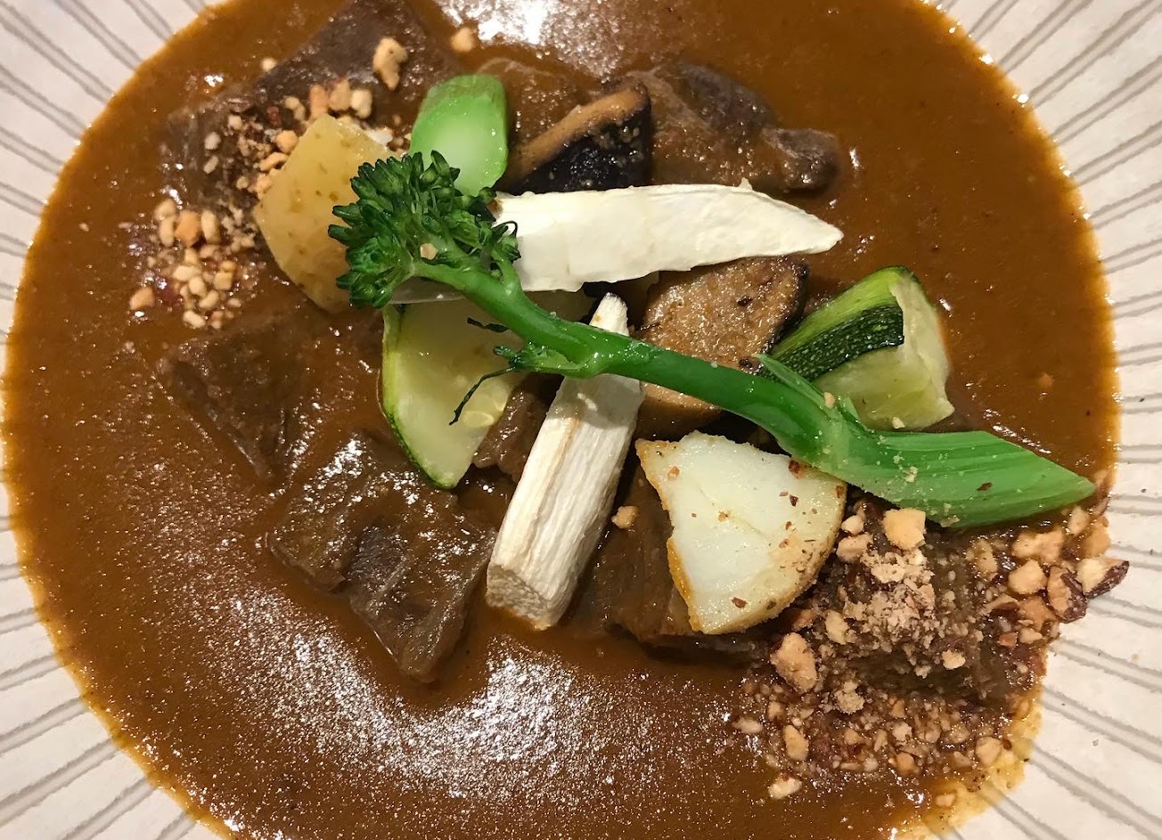第一次來,服務的小姐很熱情接待並且解說,點了金秋咖喱牛腱心,坐在吧台位置,等待餐點的過程可以看到主廚很認真的在製作每一道菜。