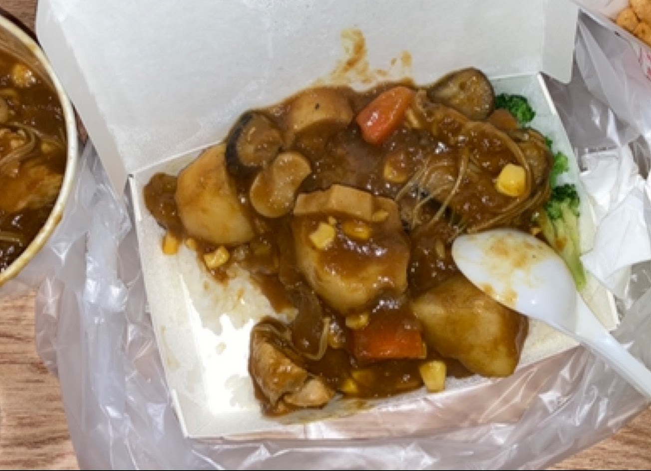 今天點了雞肉咖哩,滿滿的碗裡面都是料,有金針菇杏包菇玉米雞肉⋯真的太豐盛了啦?