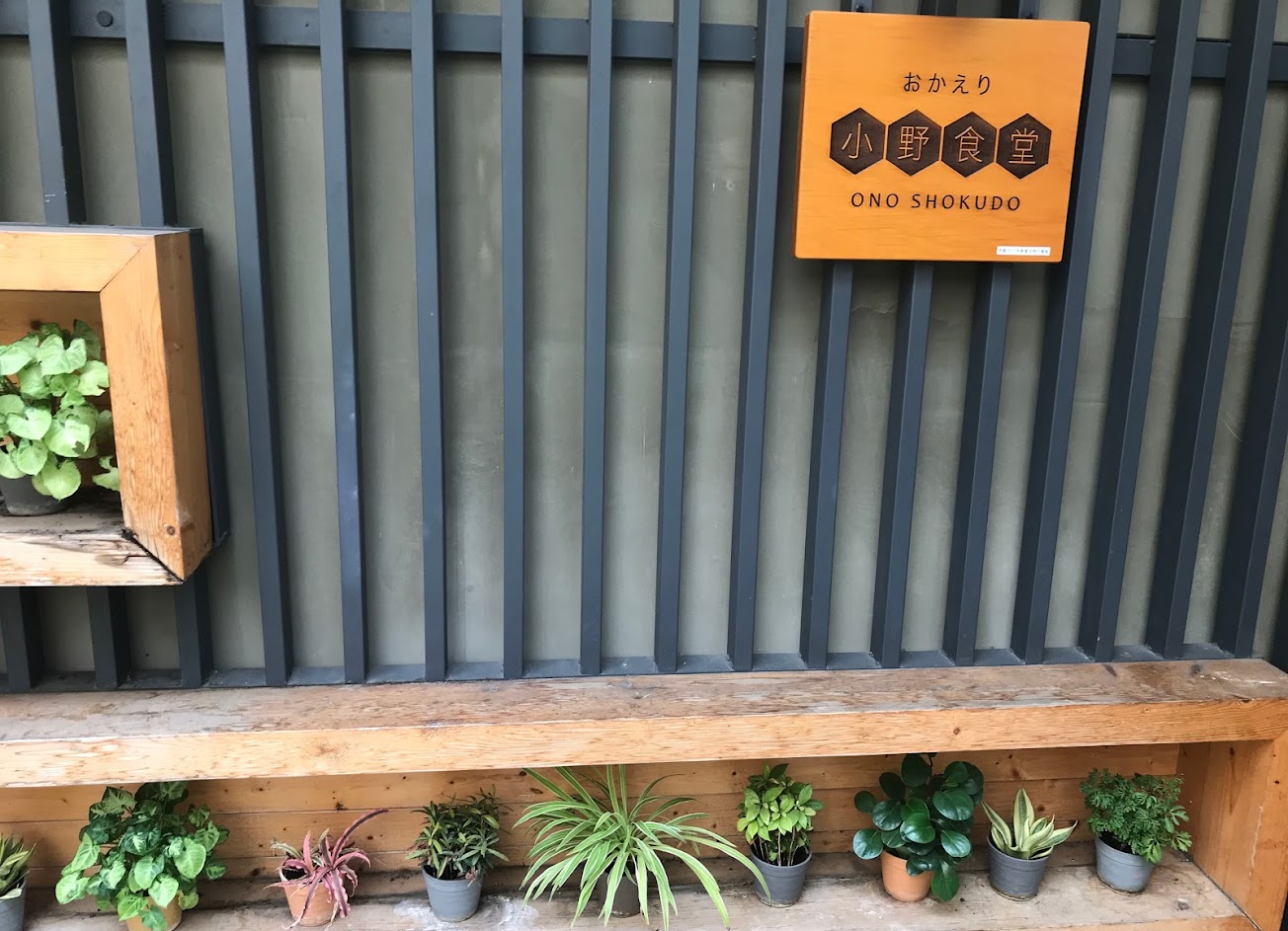午後日光和煦,拜訪位於精誠五街春水堂附近的「小野食堂」。食堂販售咖哩飯、烏龍麵、飯糰定食等附有多樣小菜的日式家常料理,也有アジフライ(酥炸竹莢魚)這種在臺灣沒有很常見的選項。食物口味不錯,小庭院生機盎然,室內空間也明亮舒適。