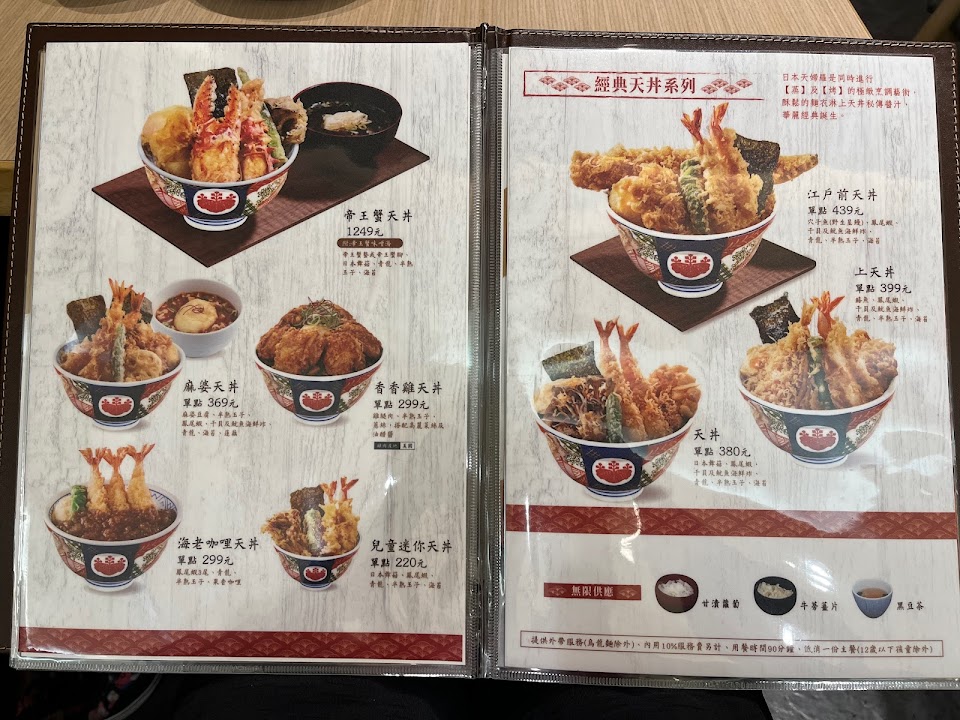 這次吃了天丼跟麻婆天丼,吃起來感覺有點小失望,感覺cp值好像有點低,還另外收了10%服務費,對於沒有什麼服務的店家收取服務費都會想說到底服務了什麼?在台北車站用餐幾乎都是吃完就準備去搭車了,匆匆的30分鐘內就是上菜,吃東西,吃完付錢離開,就這樣是要服務什麼呢?
