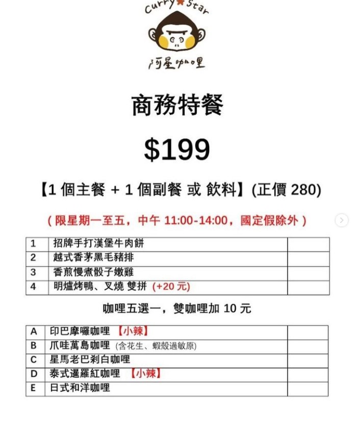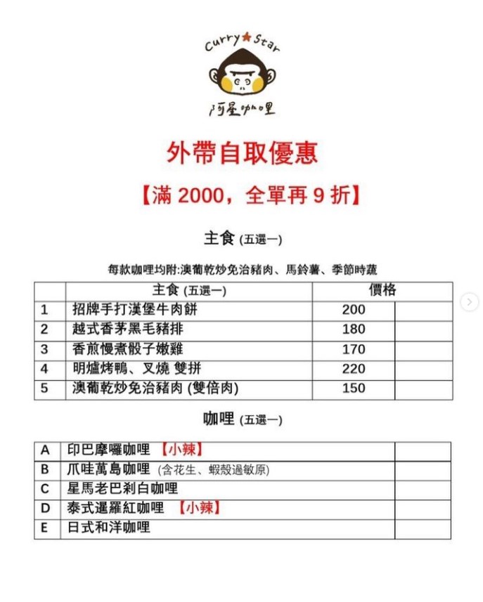 2024最新在地推薦餐廳的菜單_阿星咖哩 Curry Star-台中 人氣必吃特色異國料理 商業午餐 平價便當外帶外送 美食聚餐餐廳推薦的菜單、圖片