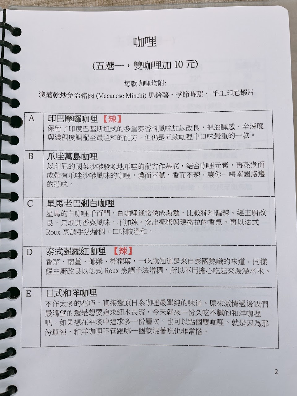 菜單上的介紹十分詳細,咖哩選擇雙醬只要加價10元