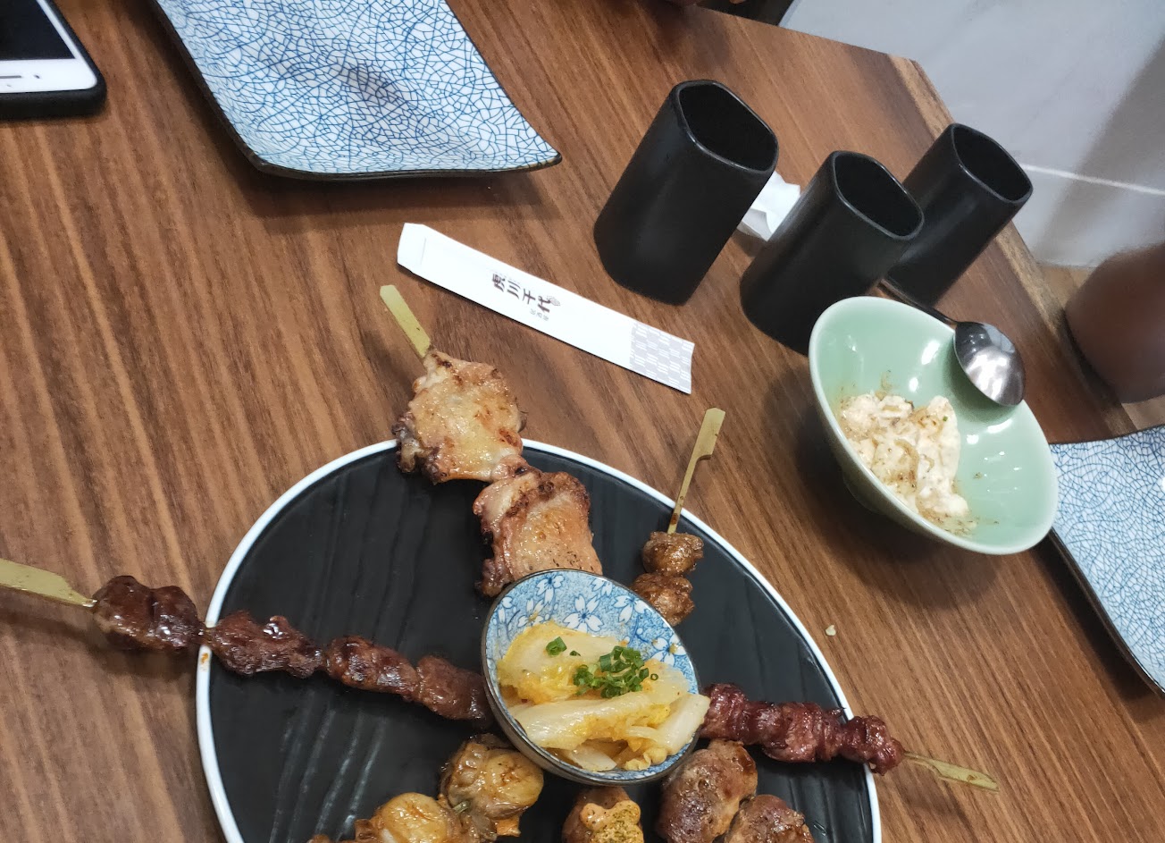 串燒的調味過重。 牛小排和伊比利豬不錯吃。