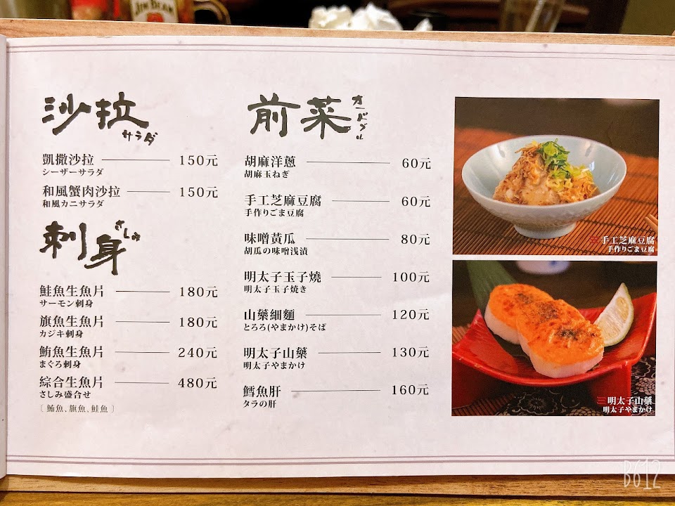 餐點好吃多樣,飲料也不遜色 餐點類型 晚餐 平均每人消費金額 $400-600 餐點:5 服務:5 氣氛:5 建議的餐點 午魚一夜干, 日式黑糖麻糬, 揚出豆腐, 山藥細麵