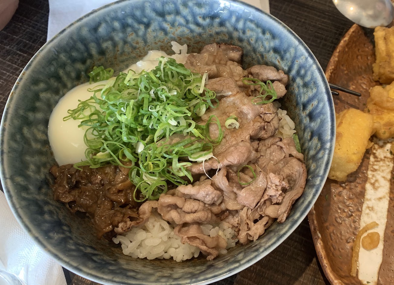 炙燒牛丼跟唐揚雞絕讚好吃,尤其唐揚雞份量超大,吃起來像泰式跟日式混搭。泡菜跟炒四季豆也好吃,松露薯條是沾松露醬,不是直接撒松露在上面,這點比較可惜。