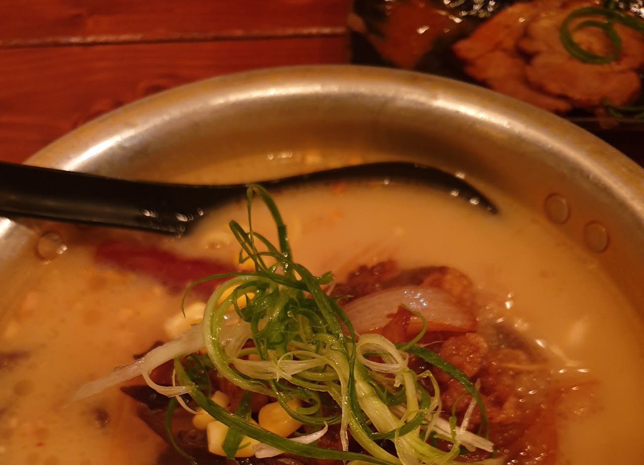 拉麵是用韓國銅鍋裝的 初訪選了赤鳥元祖拉麵 烤雞肉串本身蠻好吃 湯頭沒有到日本那麼濃郁 其他配料也偏少 有點台式拉麵的感覺 另外單點合鴨玉子燒還蠻好吃的 煙燻口味的鴨肉很嫩