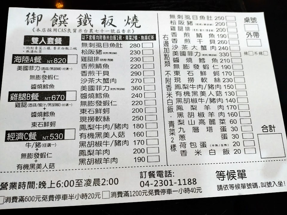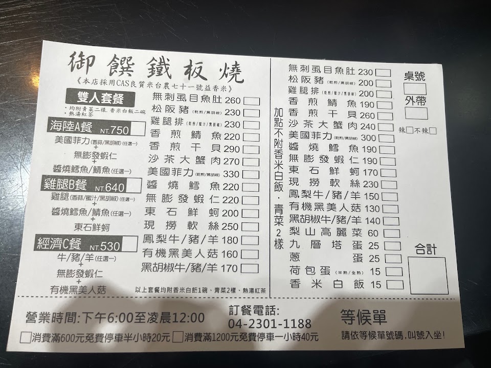 2024最新在地推薦餐廳的菜單_御饌鐵板燒的菜單、圖片