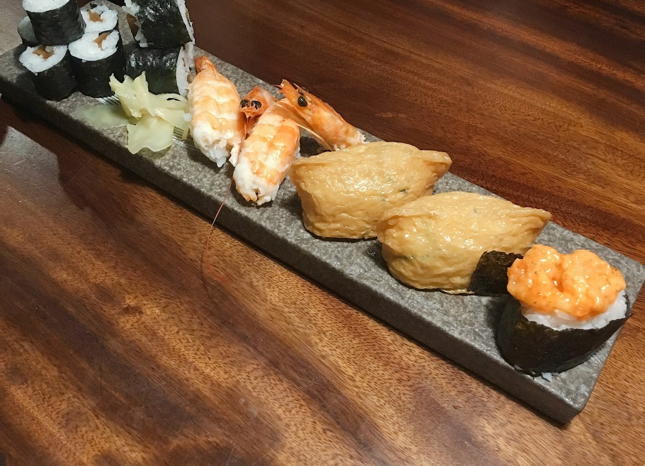 服務態度親切,價格也不會太貴,關於餐點個人認為只有鰻魚比較出眾(要點鰻魚最好先預定不然可能等很久),其他東西略顯遜色。 鰻魚吃起來不錯,鰻魚是點了後直接抓起來現宰,師傅動作流暢很快就清除內臟取出骨頭,之後放上火爐去烤,吃的時候碳香十足,醬汁口味稍重但也不會過度膩口。 雞肉串烤到肉質挺乾的,皮很酥脆但有些帶有燒焦味。 手捲上面還有個蝦頭放上面,視覺上感覺很厲害,但吃起來就是一般手捲的感覺。 味噌湯的鹹淡抓的很微妙,我是認為偏向沒有味道那邊,不是很會形容但總之這種味道我是蠻反感的。