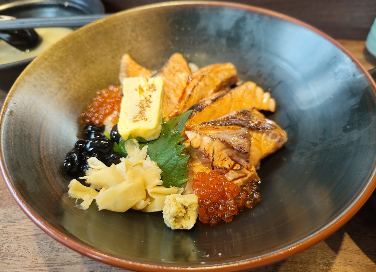 鮭魚跟鮭魚卵份量超夠,又很新鮮,搭配黑豆跟薑絲很爽口