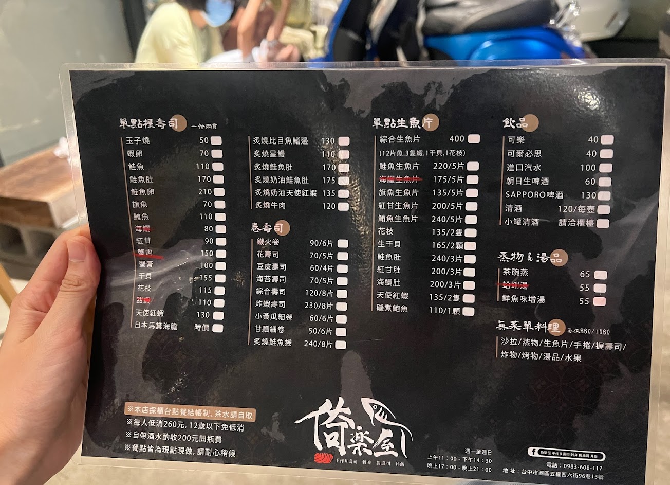 Best sushi spot in Taichung west dist! Reasonable price with really good quality, friendly staff and service! Main course price range about NTD 200-350, come out with huge portion of miso soup.
