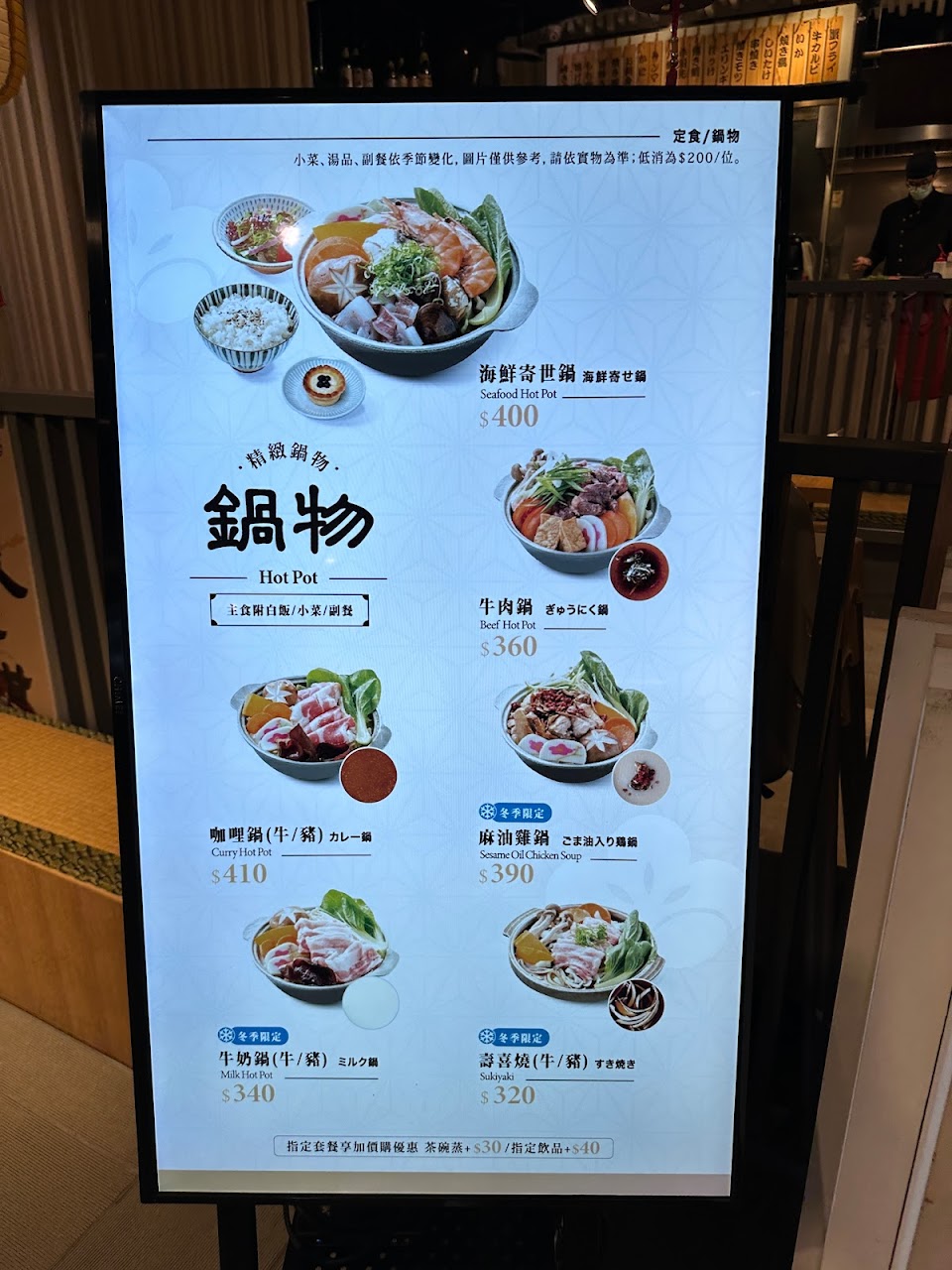 以上定食均附白飯、小菜、湯品、副食