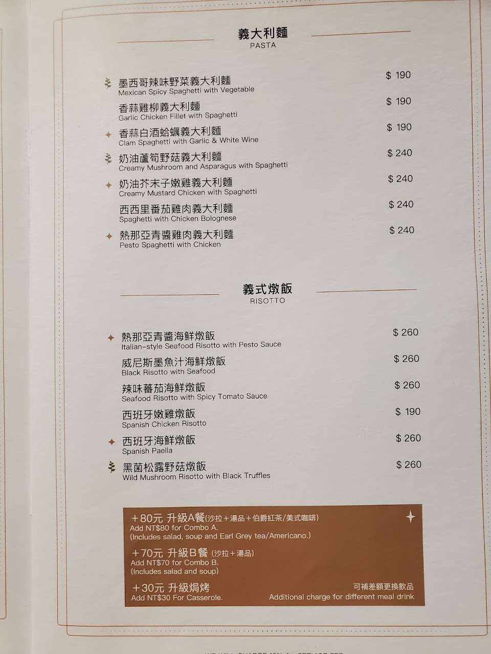 不論是義大利麵或是燉飯,口味都非常棒,吃了有幸福的感覺,CP值很高