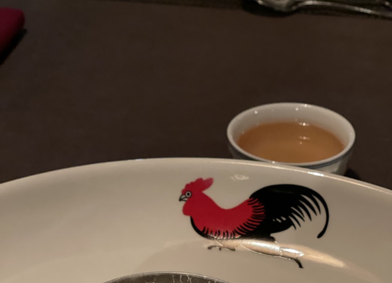 冷前菜的糯米餅配醃漬生蝦,味道很有趣,有櫻花蝦米糕的既視感。糯米餅沒有碰到蝦子的地方是脆的,蝦子下方的地方帶點嚼勁,口感豐富。