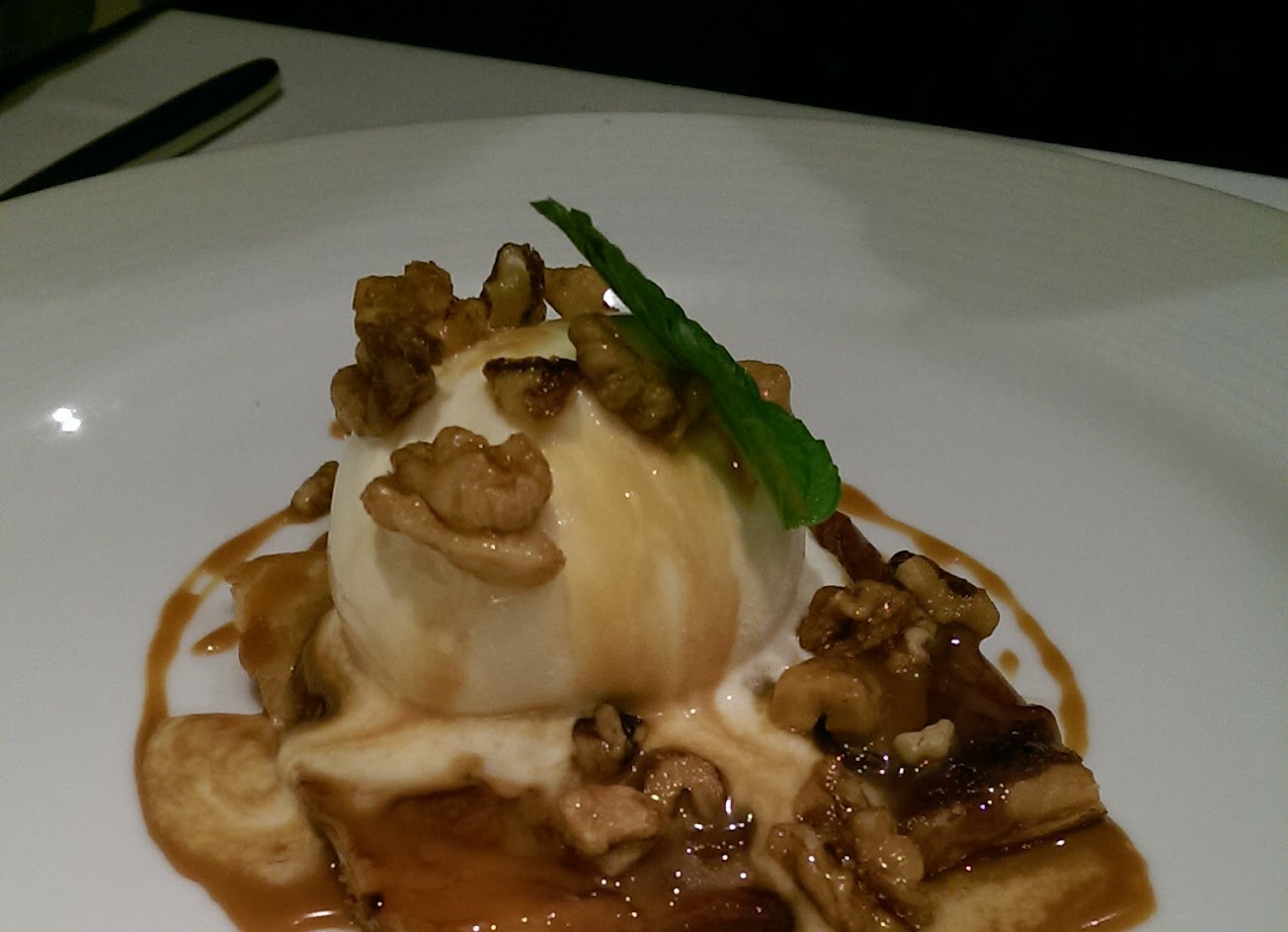 餐後甜點除了基本的烤布蕾、冰淇淋蘋果派和濃巧克力蛋糕表現水準之上以外,加價點了香橙酒舒芙蕾,不淋醬以前內部就有酒味了不愛酒味的朋友多注意,口感不錯但少了點蛋香。