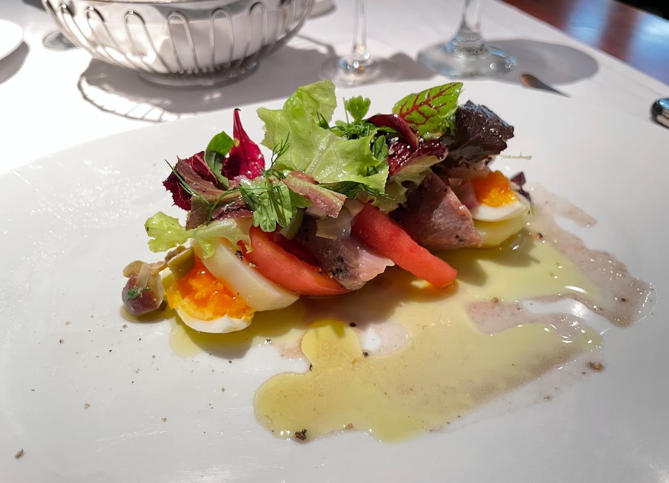 環境高雅的高級餐廳 適合約會小酌很有氣氛 服務品質良好 吃完麵包還會幫忙刮麵包屑、不定時倒水 餐點精緻美好 不過龍蝦牛排雙拼兩人套餐 家人反應 牛肉過鹹 沒什麼激賞… 龍蝦溫度恰好 新鮮 高價位(有加價餐點,兩人花費5000多) 附近有2處收費停車場非常方便 適合兩人世界享受 享受空間營造與食物鋪陳的高貴感 若單以食材 我覺得價格略高 但空間與服務整體就值得這價格了 服務 內用 餐點類型 午餐