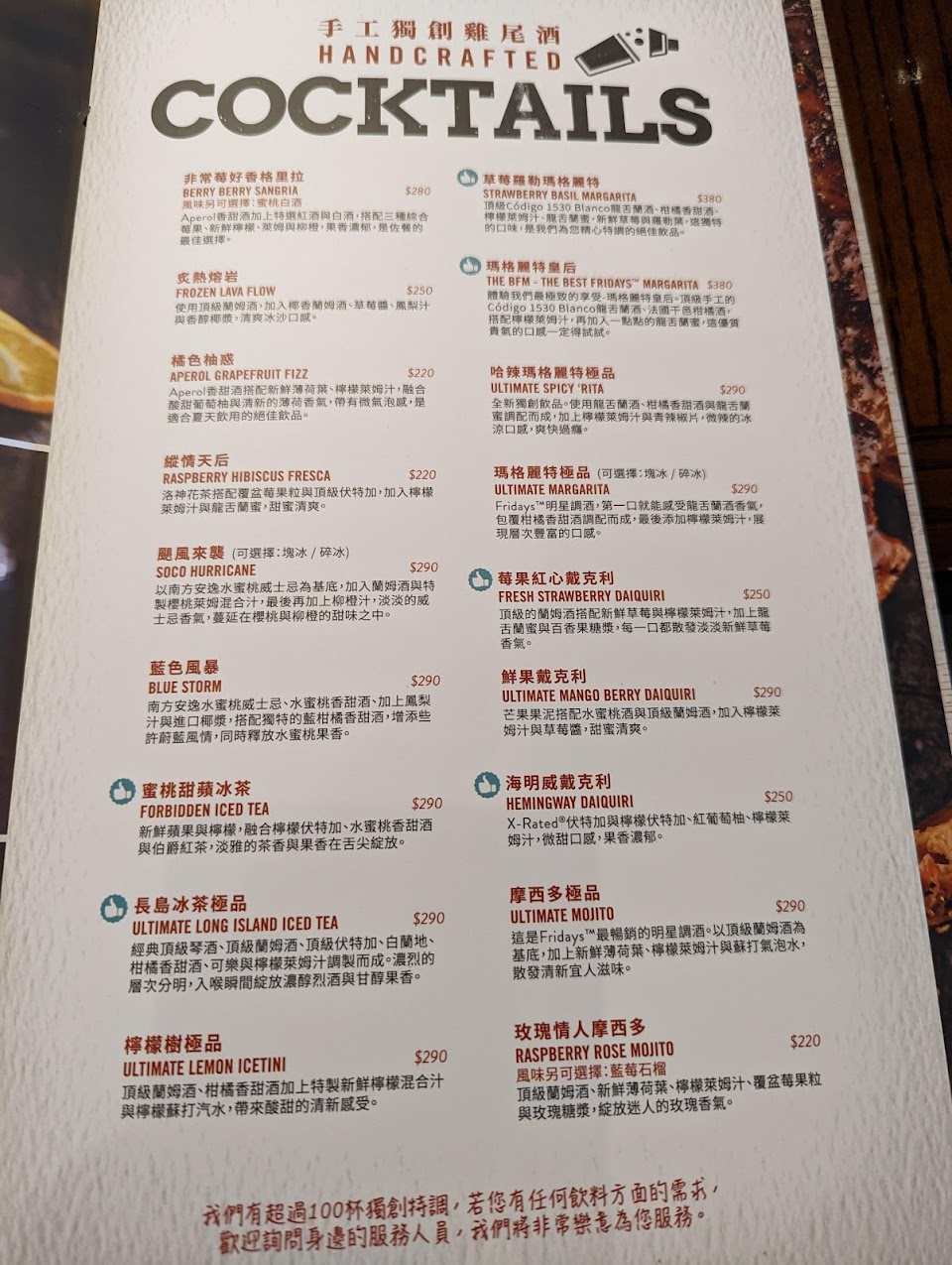 Fridays在台中也算得上是老店了,贏得不少死忠粉絲的喜愛。