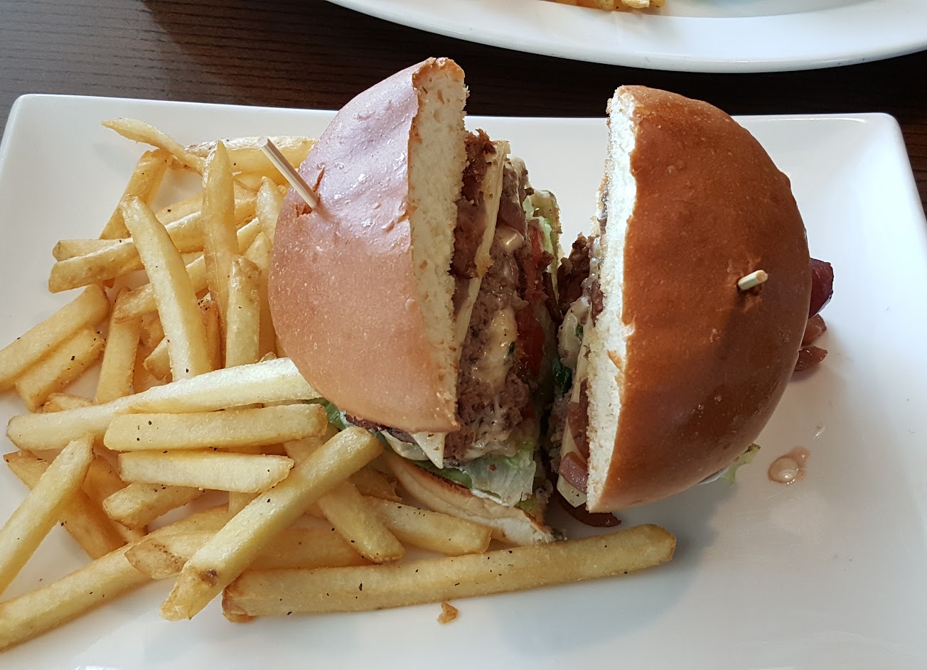 讓素食者也能開心享用美式漢堡~ 沙拉的醬汁搭配得很棒,素牛肉也非常得好吃,口感跟味道都非常相似真的牛肉~