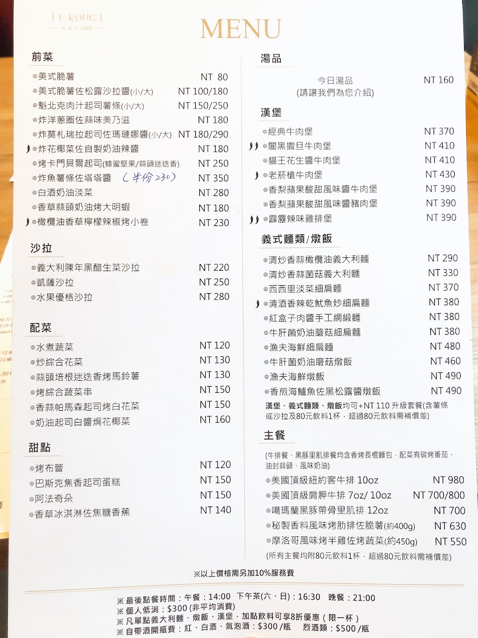 餐點採單點方式,可以視需要自己搭配前菜、沙拉及主菜。