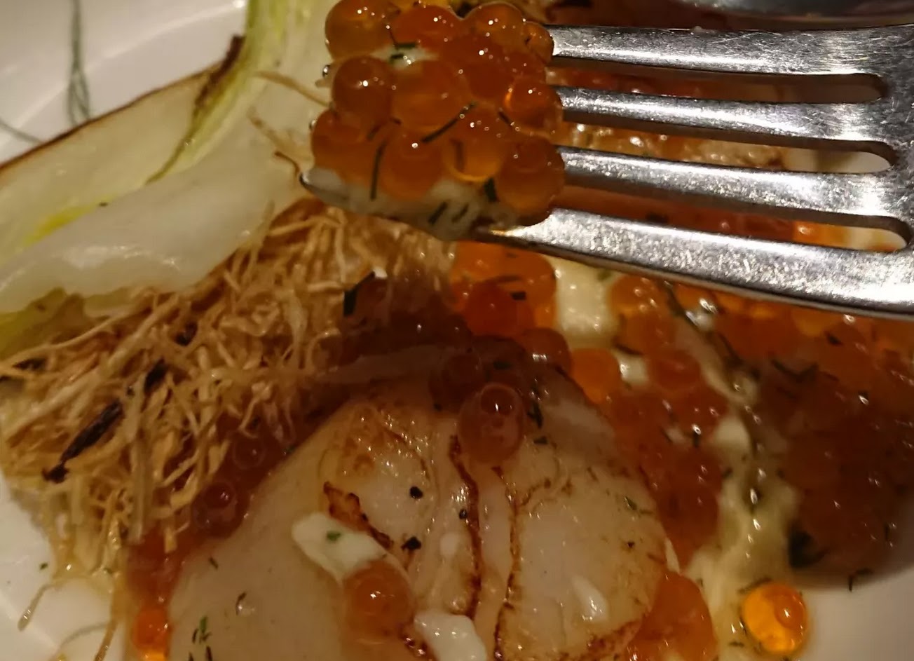 干貝跟鮭魚卵很新鮮不用提,特別的是洋芋泥非常驚艷,除了搭配海鮮食用絕配之外,配上口感較刺的炸牛蒡軟化後堪稱絕配,我從沒想過炸牛蒡可以混著洋芋泥吃