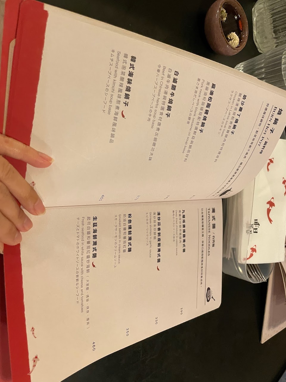 很有特色的一家餐廳,店家送的小杯菊花枸杞茶杯底有小魚很別緻,餐點口味不錯份量也很多建議女生可以共食,兩人點兩份有打包帶回來