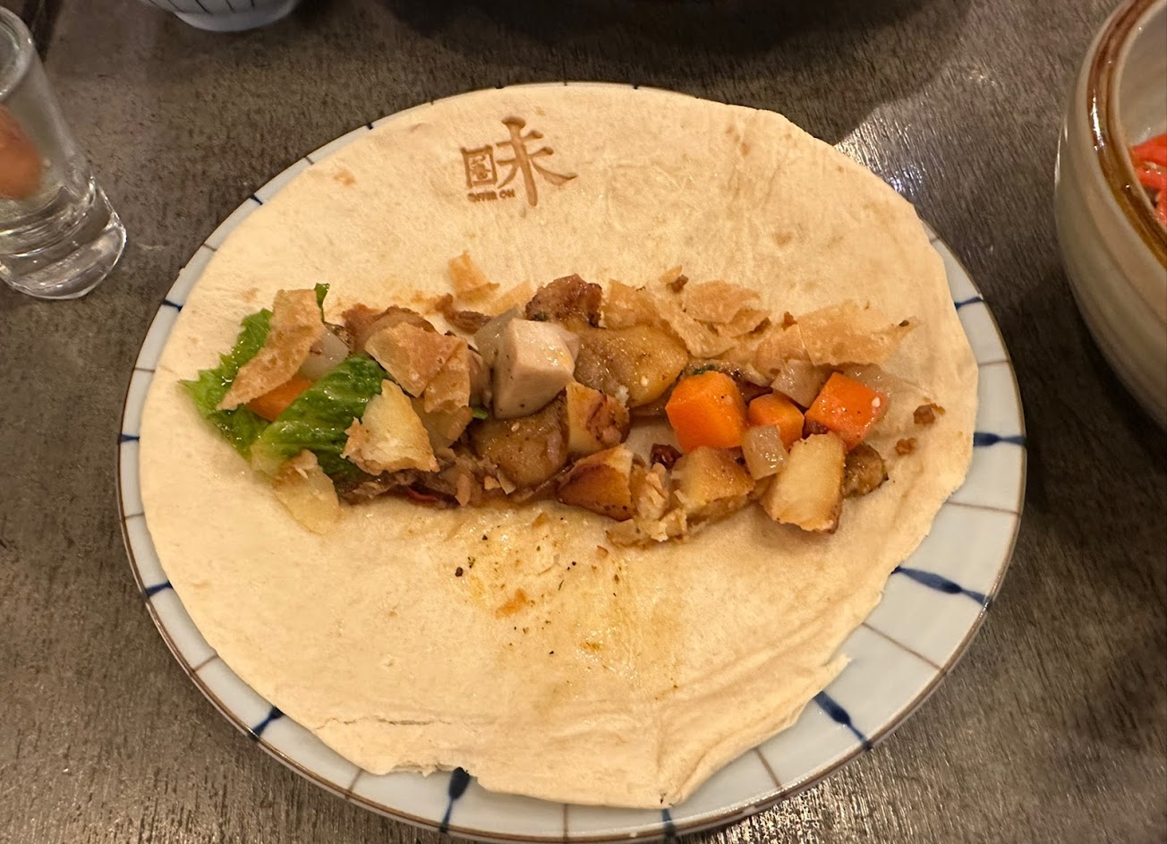 主食的部分喜歡鮭魚花捲,鮭魚很嫩搭配餅皮吃很有特色,裡面有味增醬可以搭配個人覺得有點鹹所以加少許就可以了