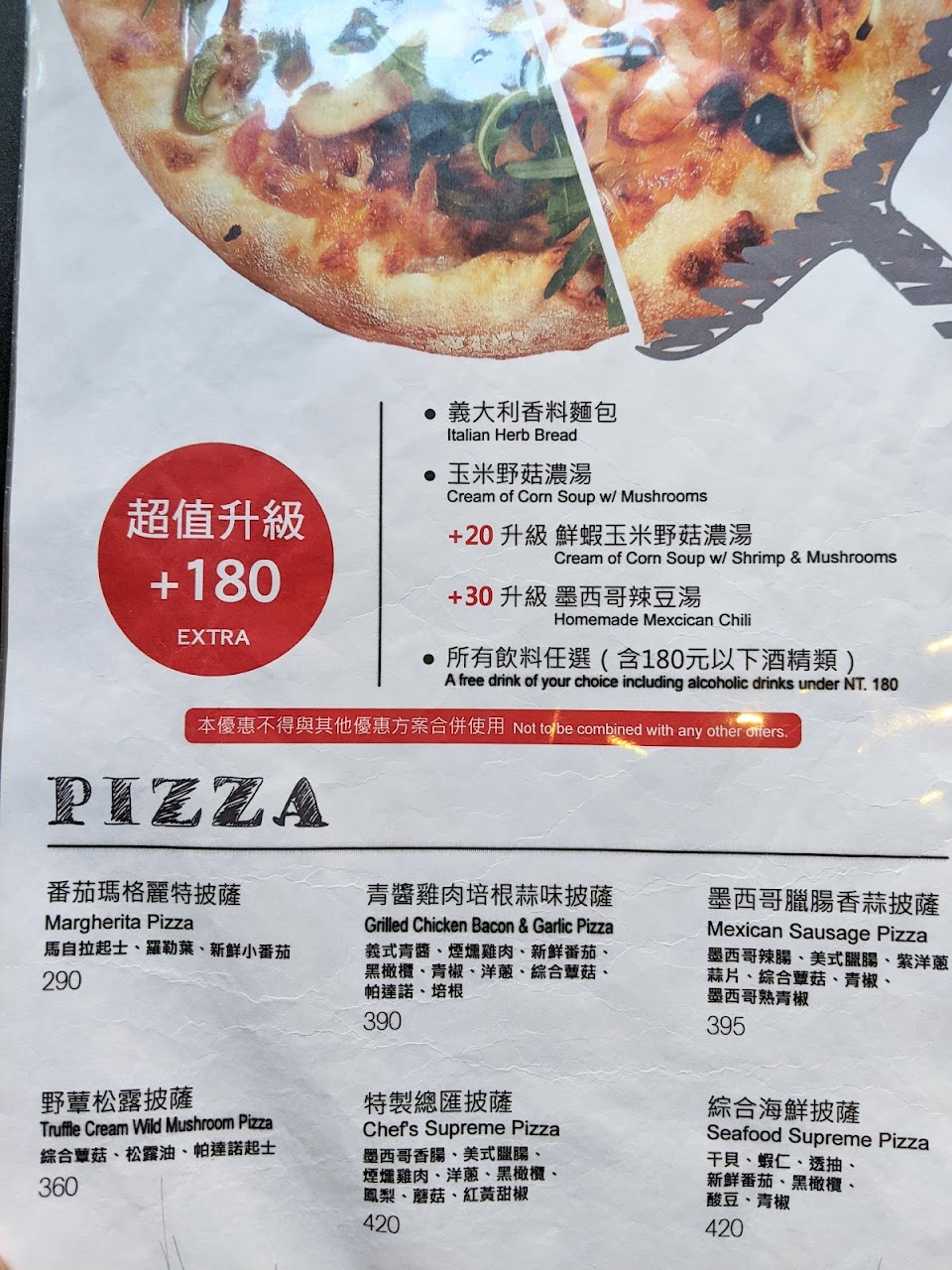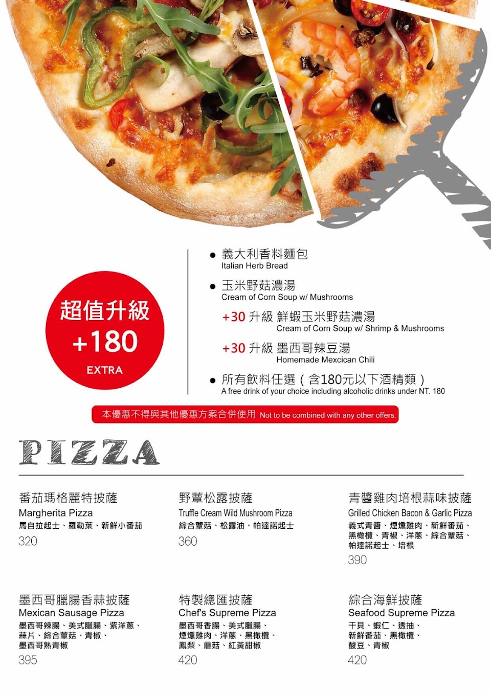 店面寬敞舒適,適合多人聚餐,餐點的話除了墨式還有美式漢堡,義式燉飯、義大利麵,印象中還有中式的酸菜魚,在這種外國風裝潢的餐廳吃中式蠻違和,會擔心不好吃,不過當天點的基本上都好吃,有機會試試其他餐點。