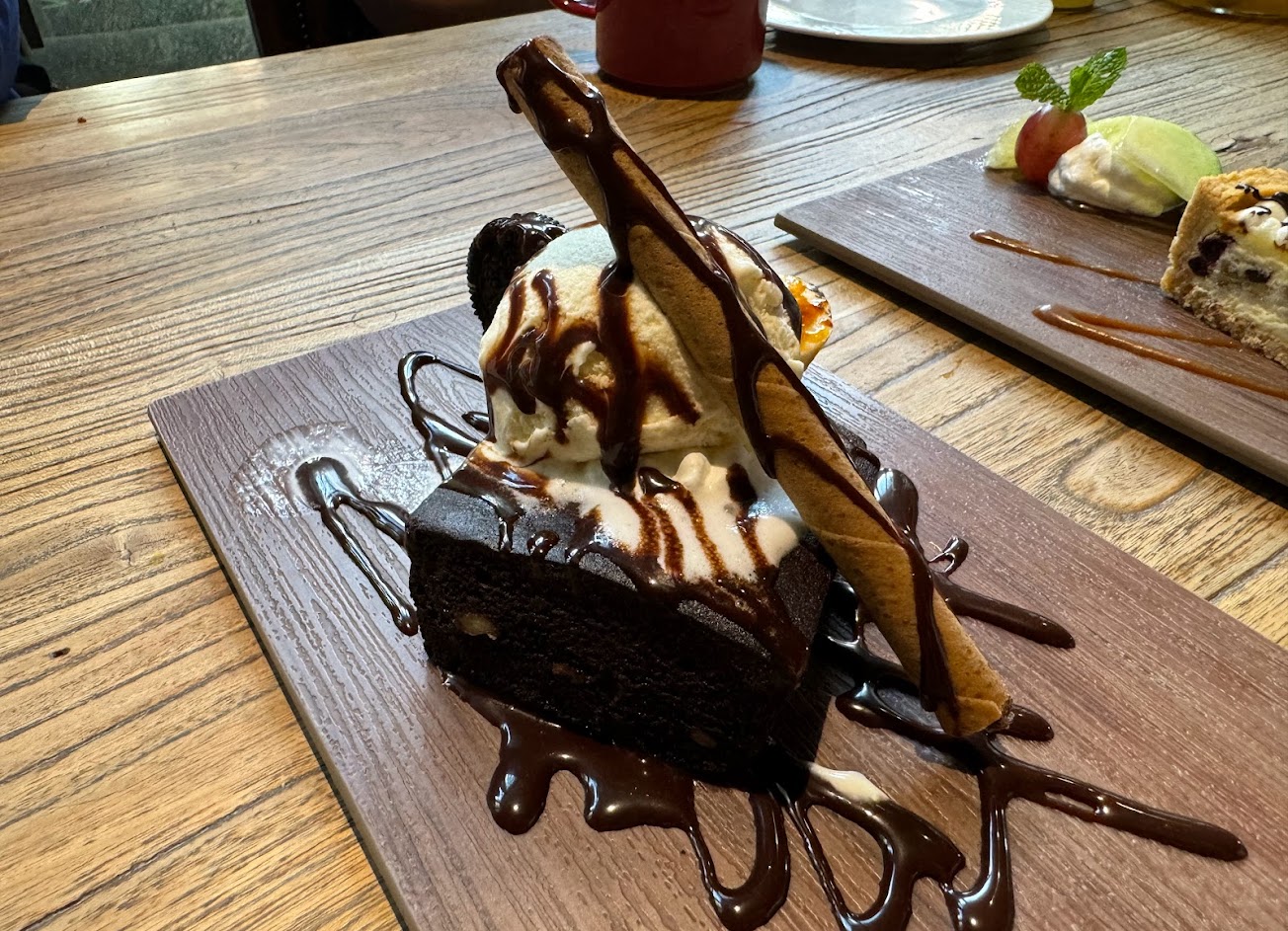 抹茶鮮奶(抹茶味很濃 但有點微苦)、森林王子蛋糕?(個人覺得加焦糖超甜 比布朗尼還甜)、德國豬腳(口味沒什麼記憶點)