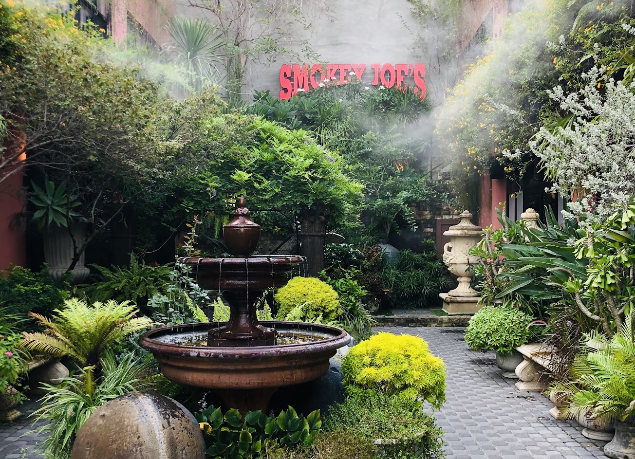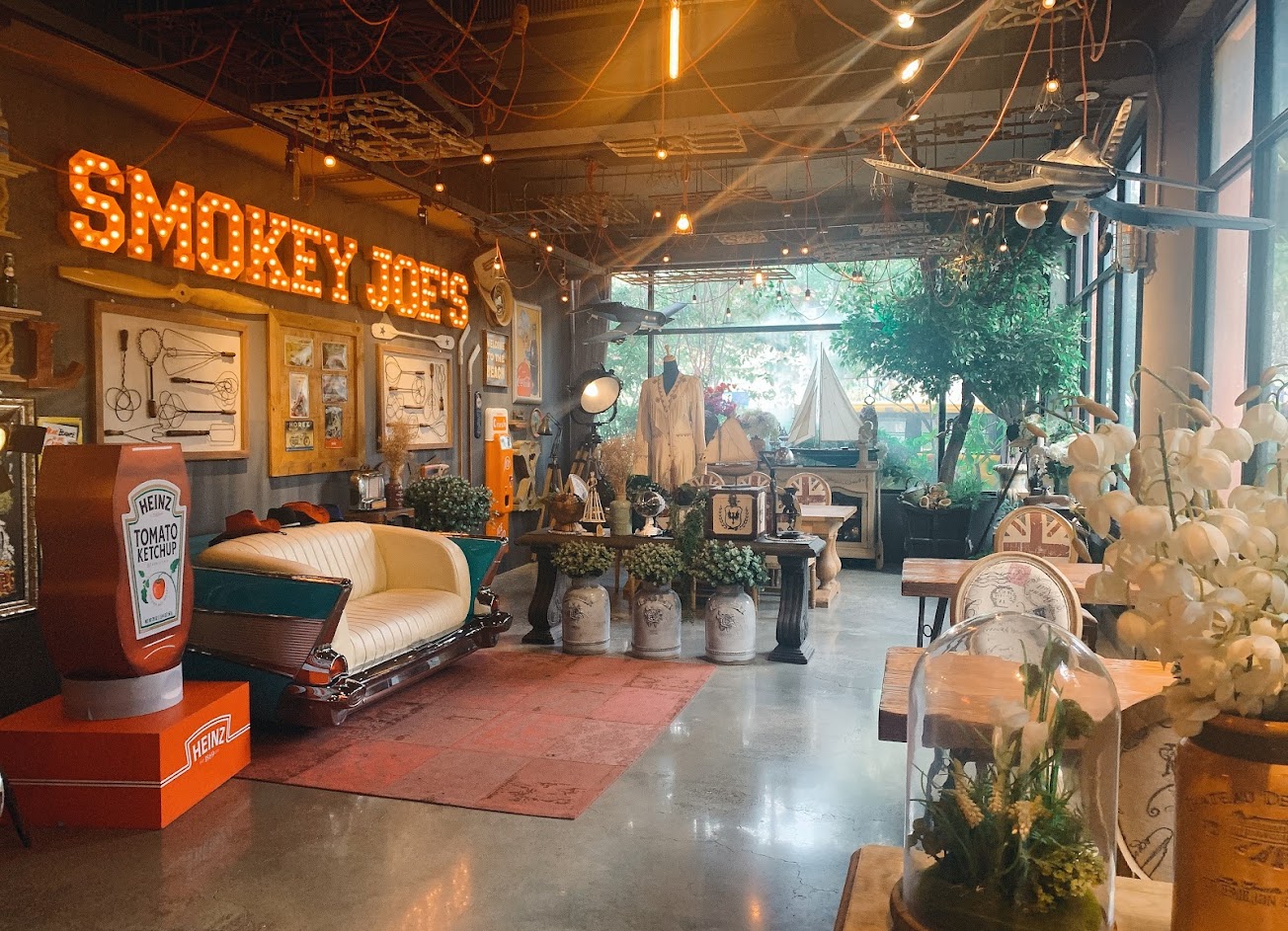 終於踏進好奇已久如何冒煙的喬,入口的花園,入眼一片奇花異草,立馬給門面打了高分,沒想到入內的裝潢也是費盡心思:美式風格的古董車櫃台和入口、各種舒服誇張的精品擺設,進來可以好好拍照欣賞一番,老闆也很懂做生意的擺上一些周邊商品。