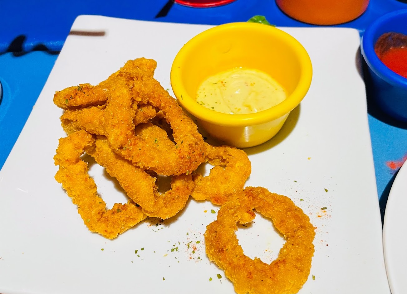 服務人員的親切感使我們用餐很舒服 洋蔥圈又大又juicy 棒棒雞外酥內嫩 餐後甜點來個甜蜜的感覺 謝謝老闆溫馨的接待 期待下次再來光顧 除了每天跑步經過 夜晚也可以進來享受