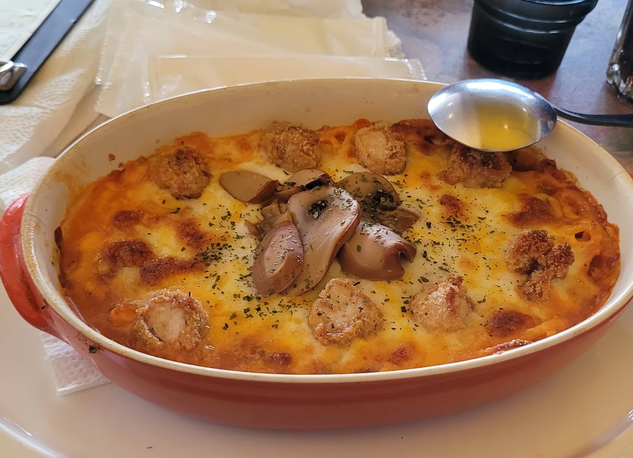 這天點的是焗烤紅醬酥脆豬排義大利麵