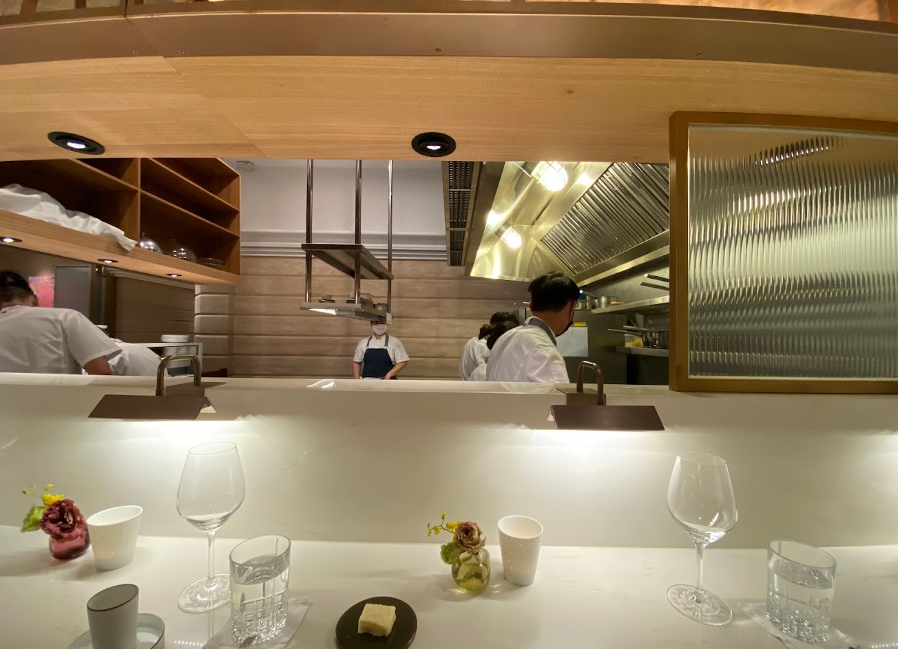 店裡的座位不多,座位之間的距離也比較近,雖然有吧台座位可以看到廚師的料理過程,也適合個人享用高級法餐,不過如果是約會/聚會的心情坐在吧檯區,吃完整個法餐會有點小遺憾,吧台可能比較適合喝點酒配小物。