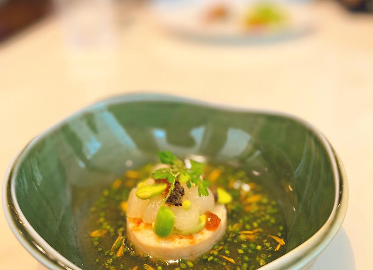 這是一家美麗的餐廳,我非常喜歡它友好且互動的餐桌服務以及精緻的美食。有些菜餚可能感覺有點複雜,元素太多,但就我個人而言,我更喜歡簡單明了的一兩層不同的口味。儘管如此,我仍然期待著再次光臨!