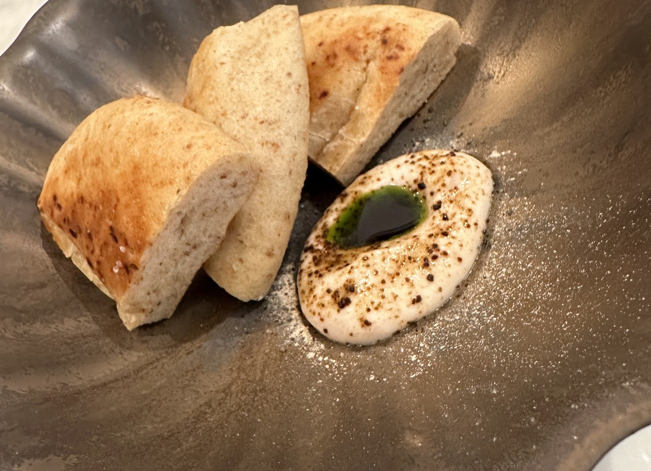 酸種 臘肉和馬鈴薯麵包, 南非鮑 鮑汁雞湯凍 椒麻醬 荸薺 甜豆 杏鮑菇