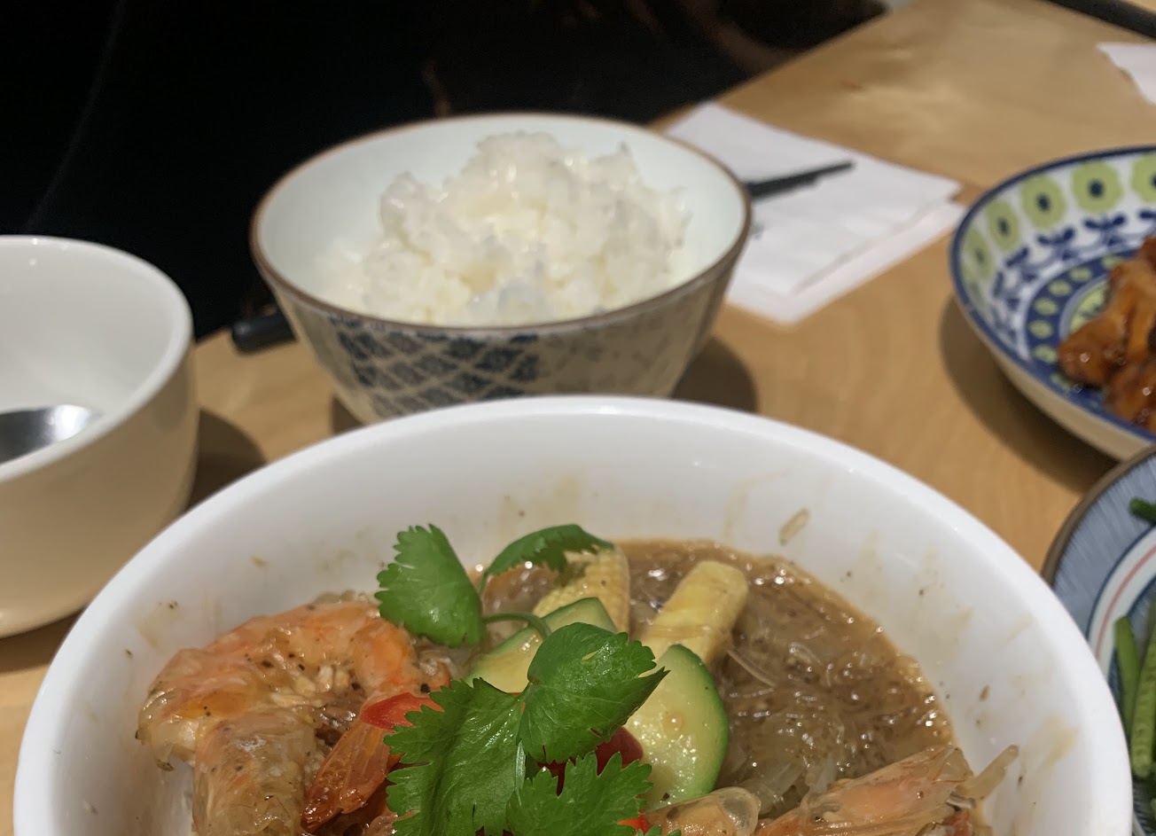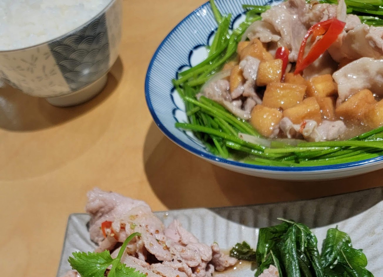點了水蓮、酸辣牛、咖喱烘蛋跟魚。魚很好吃!整體價格覺得偏高,4菜跟加點1碗白飯要985元,這個價格感覺份量可以再多一點,例如:魚也只是給個ㄧ小塊。本來要給4星,扣一顆因爲吃咖喱烘蛋時,第一口吃到一坨沒攪開的粉(不知道是不是咖哩粉)