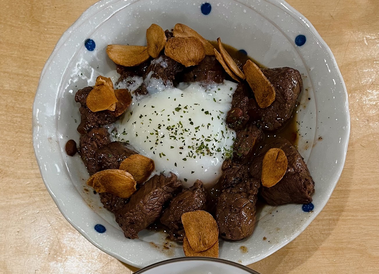 點了牛菲力香蘋奶油燒,雖然店員有建議一個人可以再單點一份主菜,但我想說一個套餐已經350元了,再點第二份就太貴了。主菜上來的時候比我預期中的小,感覺不到蘋果和奶油的味道,最後照店家建議把蛋黃戳開,吃到的就都是滿滿的蛋黃味。牛肉有的嫩有的較有嚼勁,附餐就一碗白飯跟一小杯紅茶。老實說,也許是沾了米其林的光,但說實在的我不覺得好吃,而且覺得超貴的,不會再訪了。 餐點:2 服務:3 氣氛:2 建議的餐點 牛菲力月見香蘋奶油燒