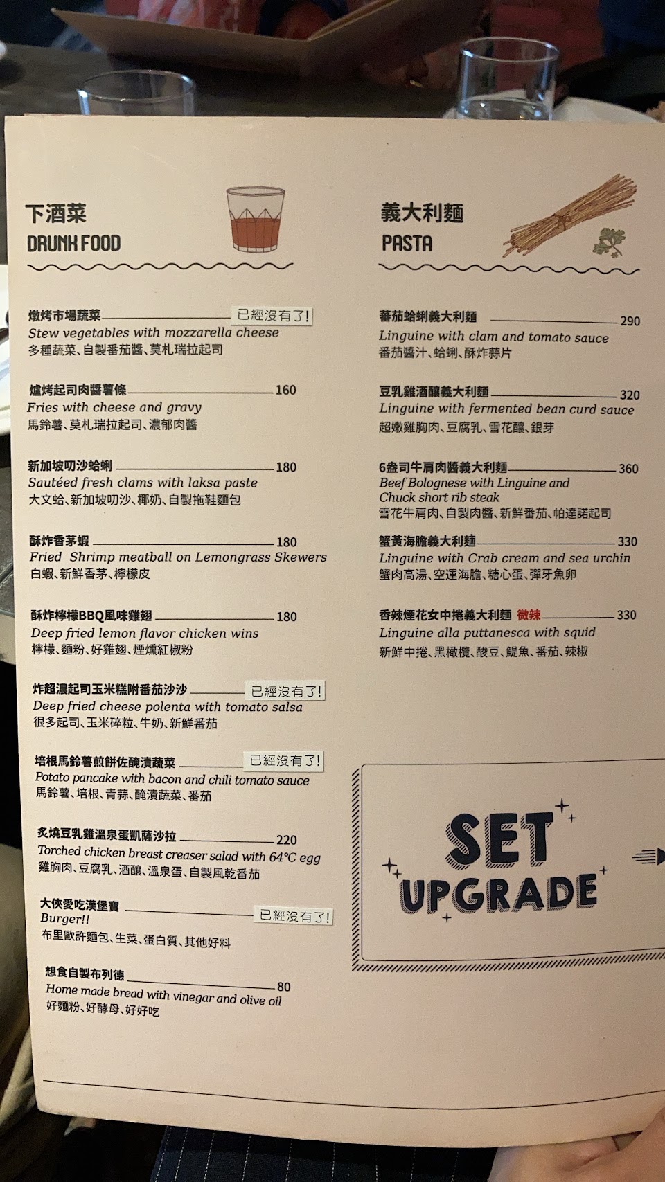 懷疑推薦豆乳雞的有吃過豆腐乳嗎?這裡的雞只有黃酒浸置雞生肉汁味,完全顯舒肥法的缺陷。義大利麵雖有傳統義麵選項,但不要期望是傳統義麵該有味道,豬五花份量夠唯一顆星,令人失望。