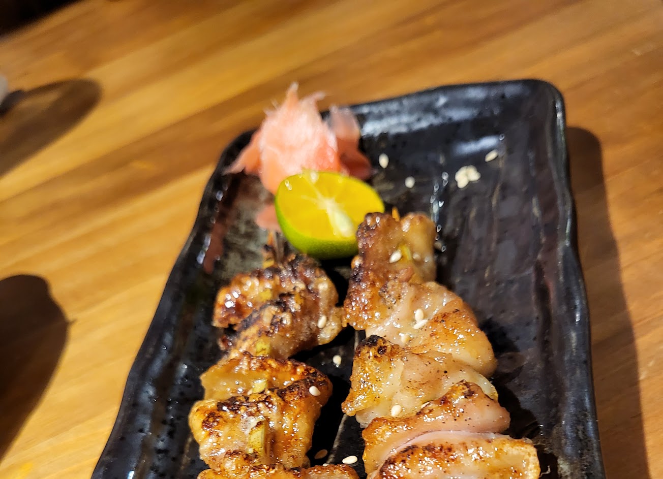 明太子雞腿吃起來很膩,海港生魚片入口有的有腥味,香酥透抽偏乾扁,明太子飯糰偏鬆散,蔥鹽牛舌很雷是那天用餐最不推的,不過家人說烤雞心好吃(我沒吃到), 那天最好吃的竟然是送的小菜紅酒蕃茄,用餐後一直想不通為什麼有4.9星,不過服務和氣氛是不錯,還是因為評5星送小菜的關係嗎?