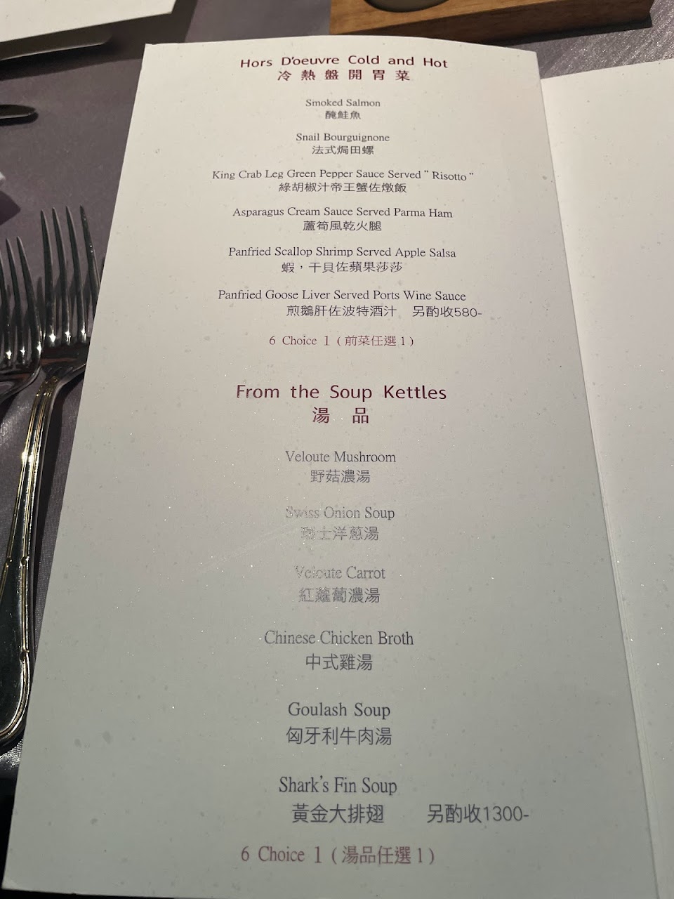 -前菜蘆筍處理的很好,口感細緻、也很入味 -雞肉清湯,鮮甜好喝 -匈牙利牛肉湯,湯底顯得不夠厚實 -菲力5oz五分熟,非常軟嫩,特別滿意的一道 -肋眼口感扎實,肉味濃郁,隨著咀嚼散發香氣