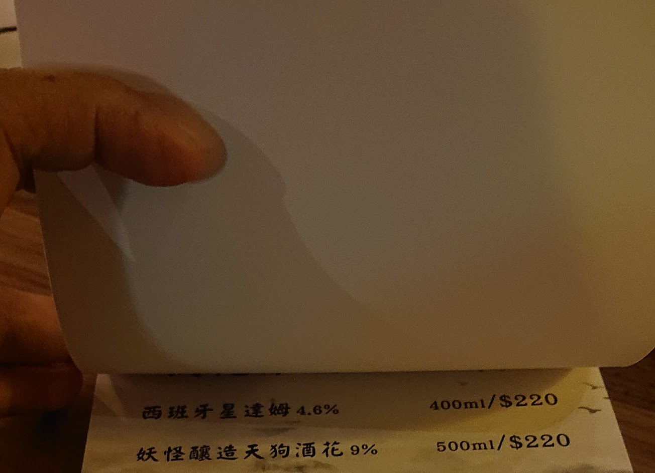 bartender 給了我們一本「神農百草經藏」密笈 白話來說就是menu 餐飲有提供烤、炸物、也有一些如水餃、麵食之類的主食