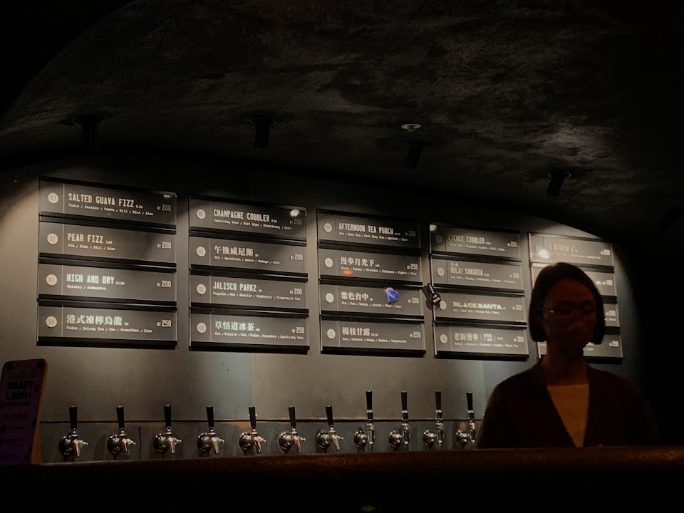?Draft Land Taichung ??????菜單往後 這間已經在park2地下層的山洞酒吧,不管是在室內或是在室外廣場坐台喝酒都很舒適,外帶式的塑膠杯喝起來真的很有異國風格,店家以台中地區為主軸的創意調酒,每一杯都讓人好像要喝喝看(所以這次一次點了四杯)(真的有這麼會喝嗎?)但其實酒精濃度不會到特高,有點妹酒XD ? 01 SALTED GUAVA FIZZ 200 04 港式凍檸烏龍 250 08 草悟道冰茶 250 14 LYCHEE COBBLER 200 每一杯都還不錯,小堂果不喜歡威士忌,所以無法去評價他的好壞XD 但值得推薦的是01跟14都還不錯!!!喝起來真的挺清爽,有些品項如果想加大杯或是酒精加厚都可以再加價!! 整體下來氣氛真的不錯,適合酒精路跑得時候來當一個站(蛤),價位也不會到太貴! ?
