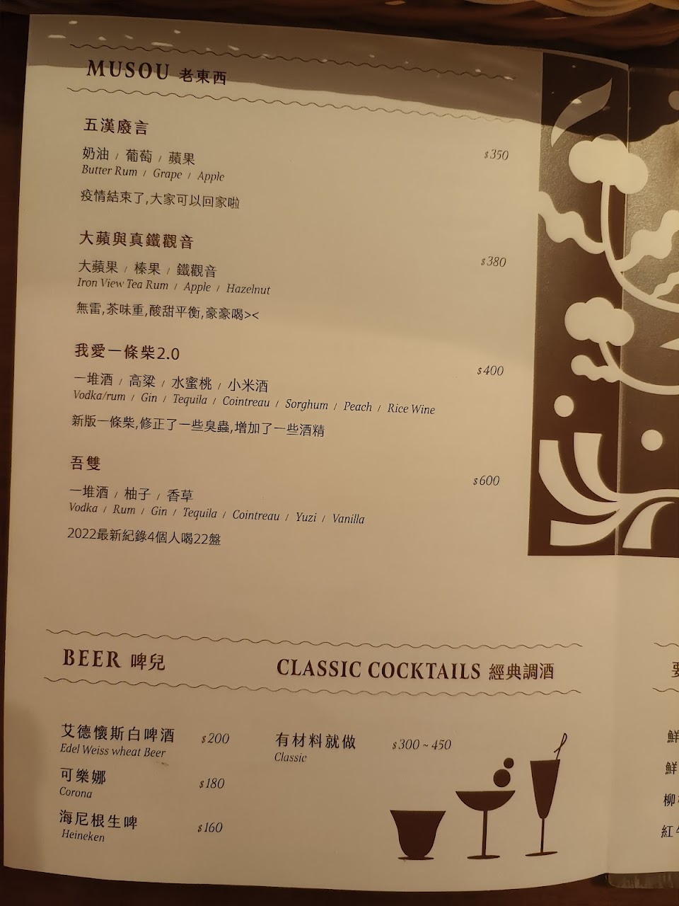 酒單很有特色也很有趣