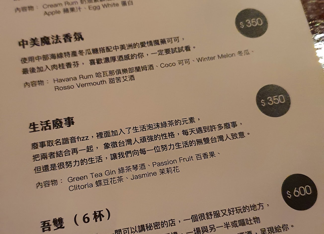 有趣的酒單 好喝的調酒