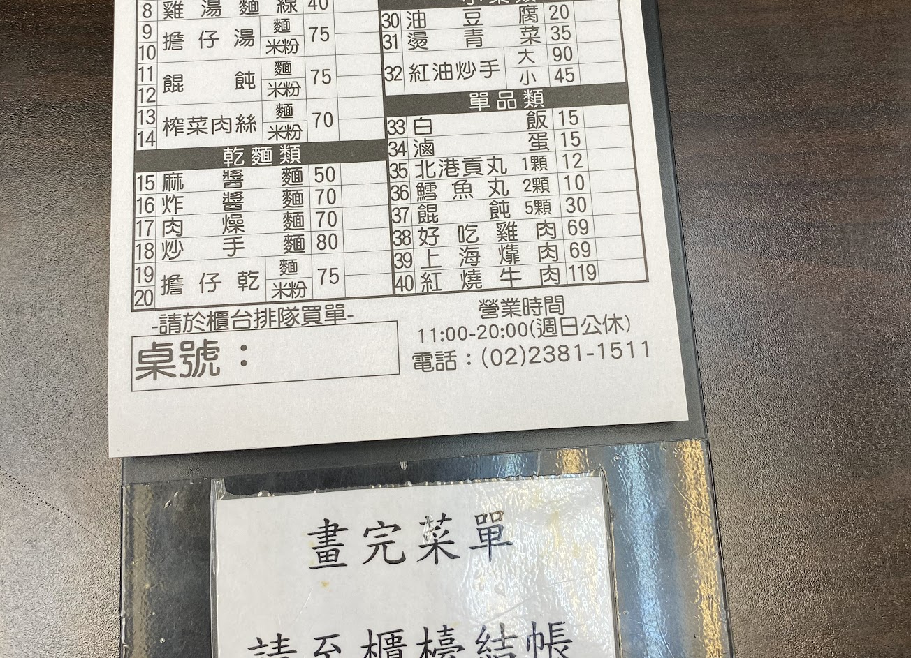 店家招呼拿著菜單入座,選好餐食後到前方櫃台點餐