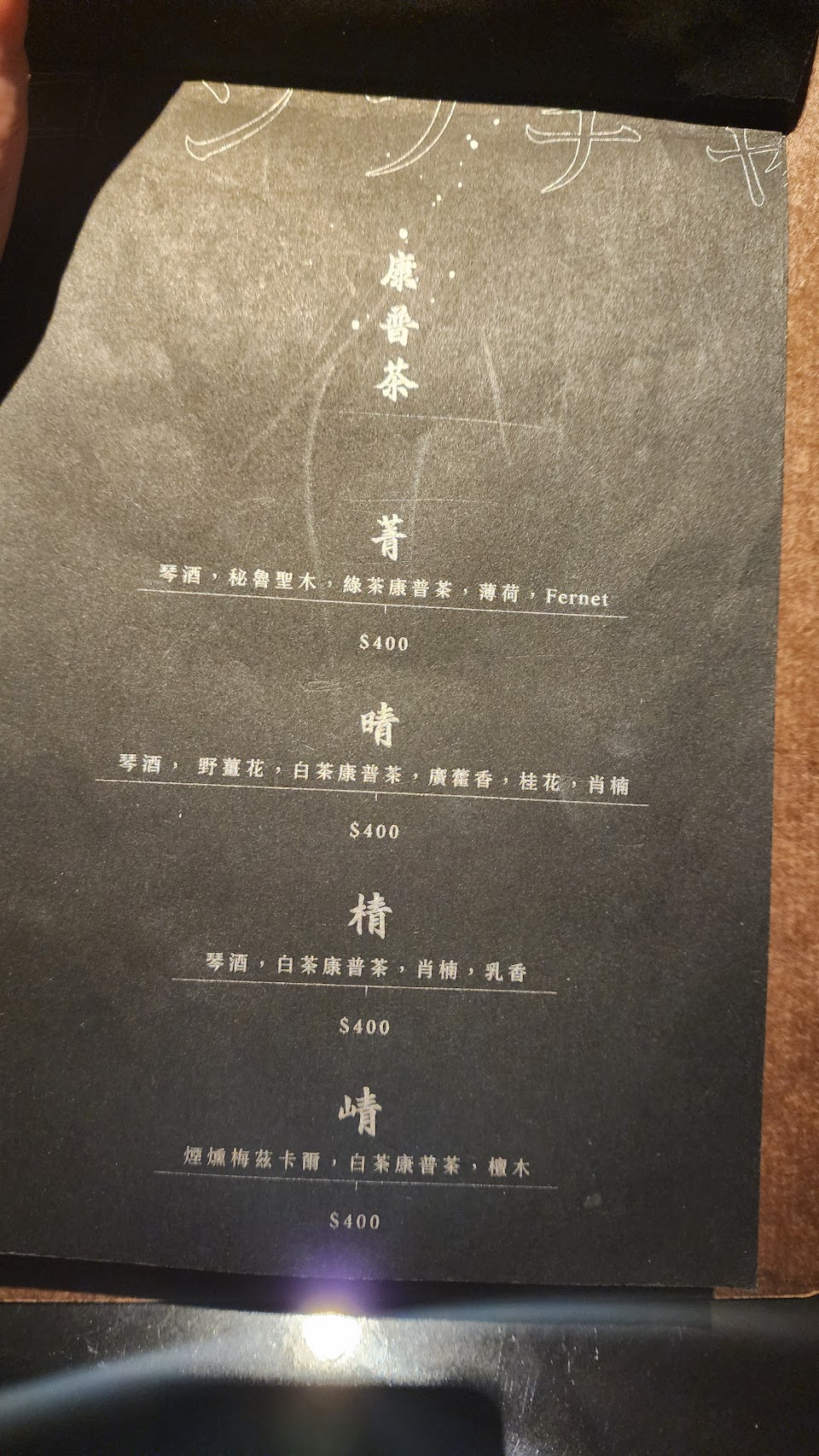 菜單很不一樣,酒的搭配也很特別,甚至經典調酒也是偏冷門的~