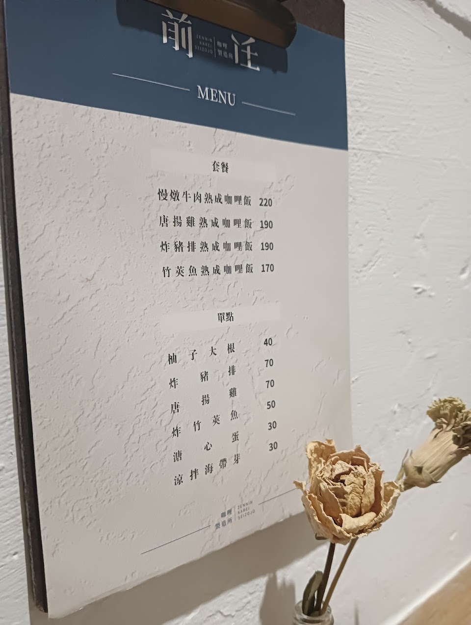 因為名稱而特別注意到的餐廳,位在巷弄裡,店裡位置不多,一進門就有一道可愛的聲音喊著‘’歡迎光臨前任”,咖哩味道有點酸甜感,味道挺特別