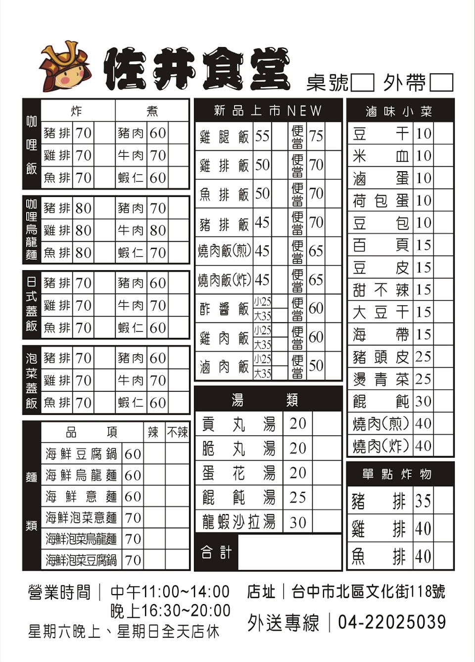 2024最新在地推薦餐廳的菜單_佐井食堂的菜單、圖片