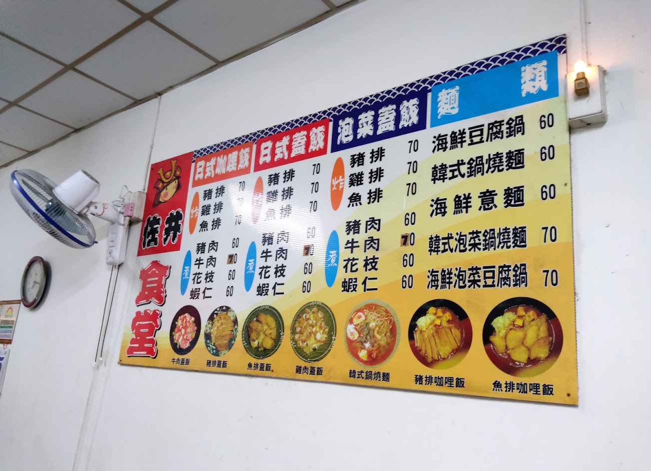 佐井食堂在二中附近,倍受學生喜愛。便宜好吃,有咖哩飯、日式蓋飯、泡菜蓋飯、鍋燒麵,炸豬排、雞排、魚排很讚!煮的豬肉片、牛肉片也好吃, 鍋燒麵有意麵烏龍麵 可選擇 還可以加麵 (意麵加10元 烏龍麵 加15元), 就是環境上沒有那麼的優良 現在有跟熊貓還有uber合作送餐。The Sakai dining hall is near the second middle school and is popular among students. Cheap and delicious, there are curry rice, Japanese rice bowl, kimchi rice bowl, pot roast noodles, fried pork chop, chicken chops, fish chops are very good! The boiled pork slices and beef slices are also delicious. The noodles in the wok noodles can be added to the noodles. You can also add noodles (noodles plus 10 yuan oolong noodles plus 15 yuan), which is not so good in the environment. Panda food and uber cooperate to deliver food.