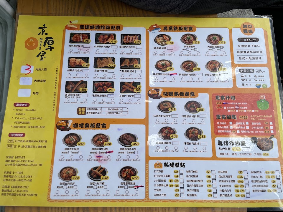 2024最新在地推薦餐廳的菜單_京厚屋 台中一中店的菜單、圖片