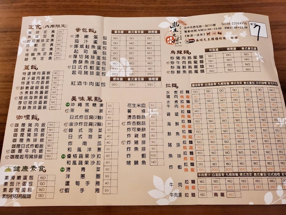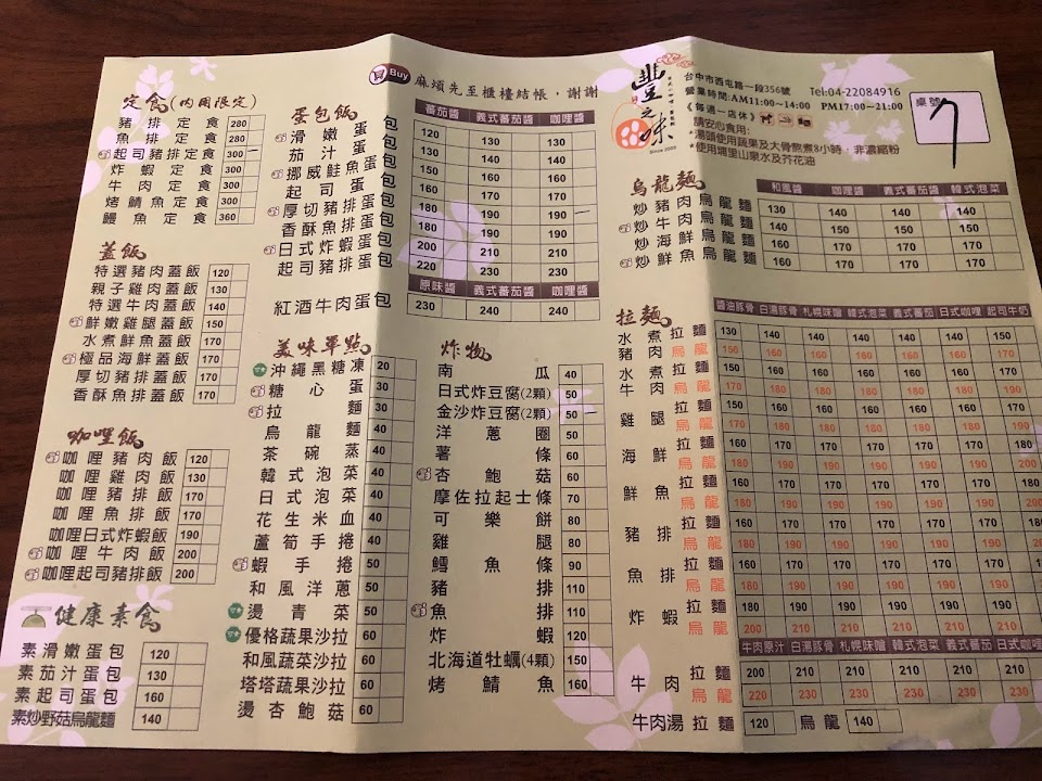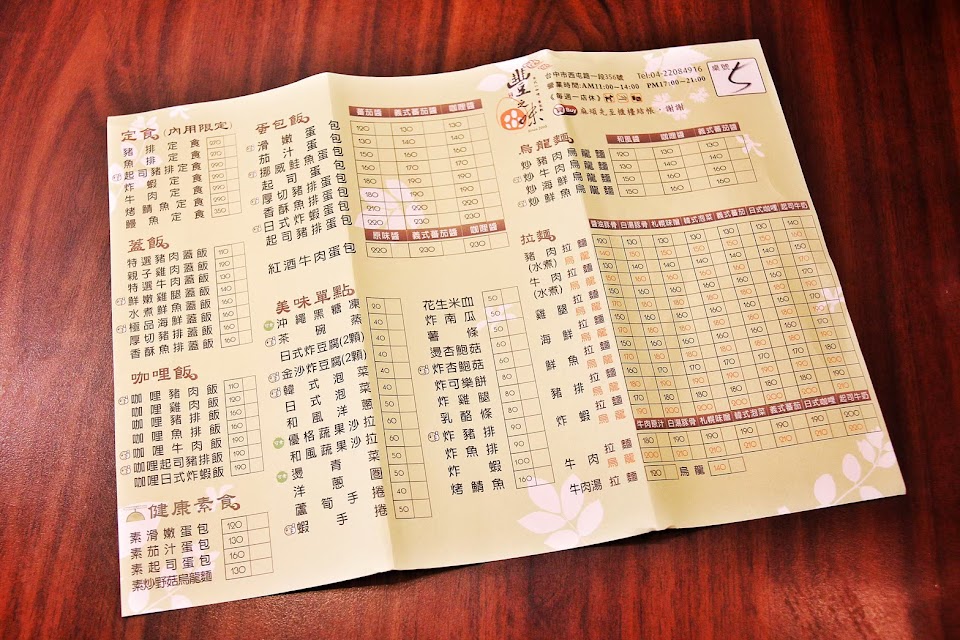 走路2分鐘就抵達,店內已有3桌客人,找了一個靠櫃枱的位子坐下,餐食選擇還挺多,有定食/蓋飯/咖哩飯/健康素食/蛋包飯/烏龍麵/拉麵和一些炸物及單點